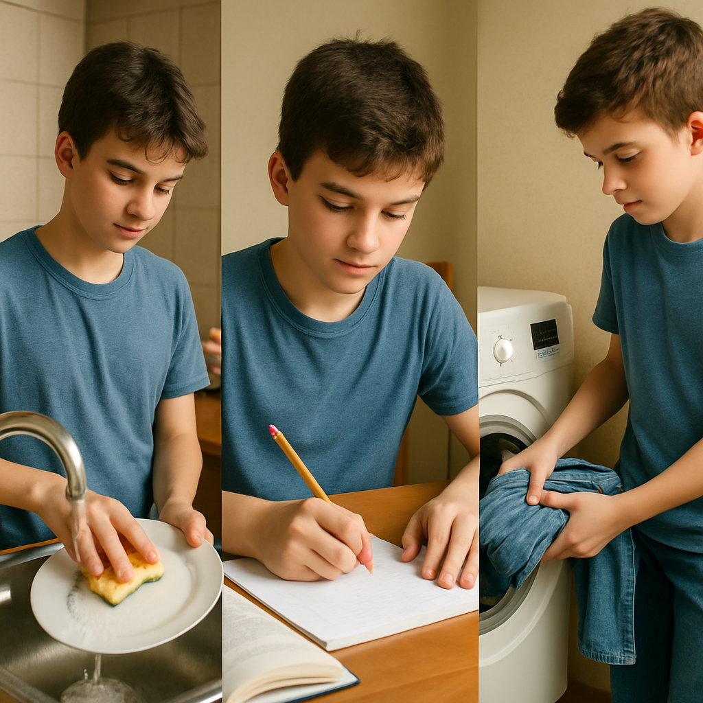 这些任务可以教会孩子生活技能和时间管理能力。做家务有助于青少年理解责任感和家庭团队合作精神。