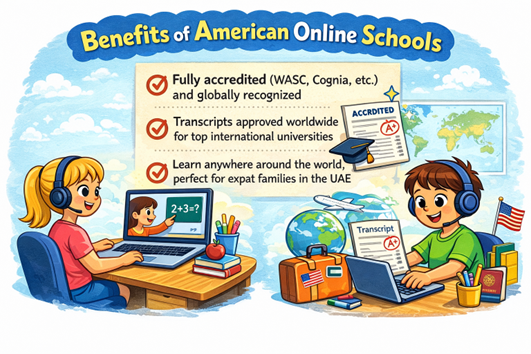 在阿联酋,美国在线学校已成为众多家庭的理想学习选择。在线教育已发展成为满足孩子所有学习需求、目标和要求的解决方案。