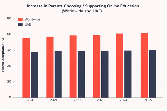 世界各地以及阿联酋越来越多的家庭每年选择在线教育。